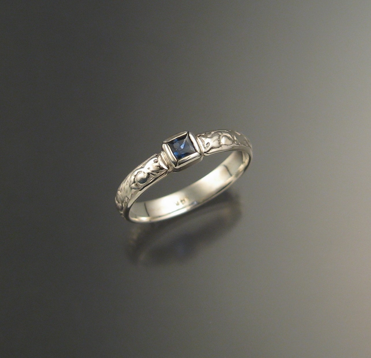 Sapphire Square cut Cornflower blue Natural Wedding Engagement ring Sterling Silver Victorian bezel set ring made to order in your size